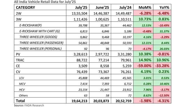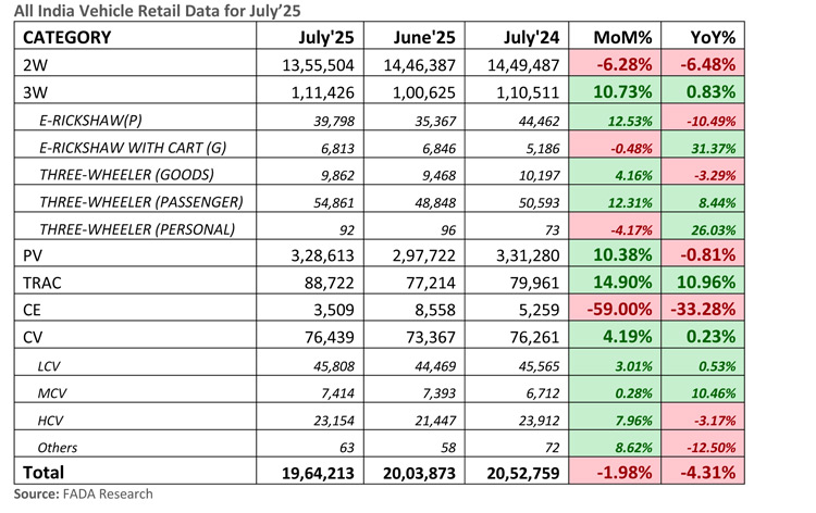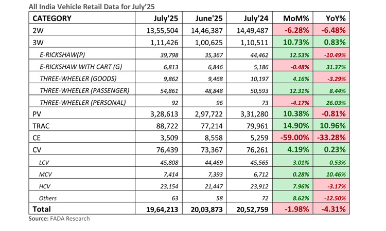 All India Vehicle Retail Data for July’25
