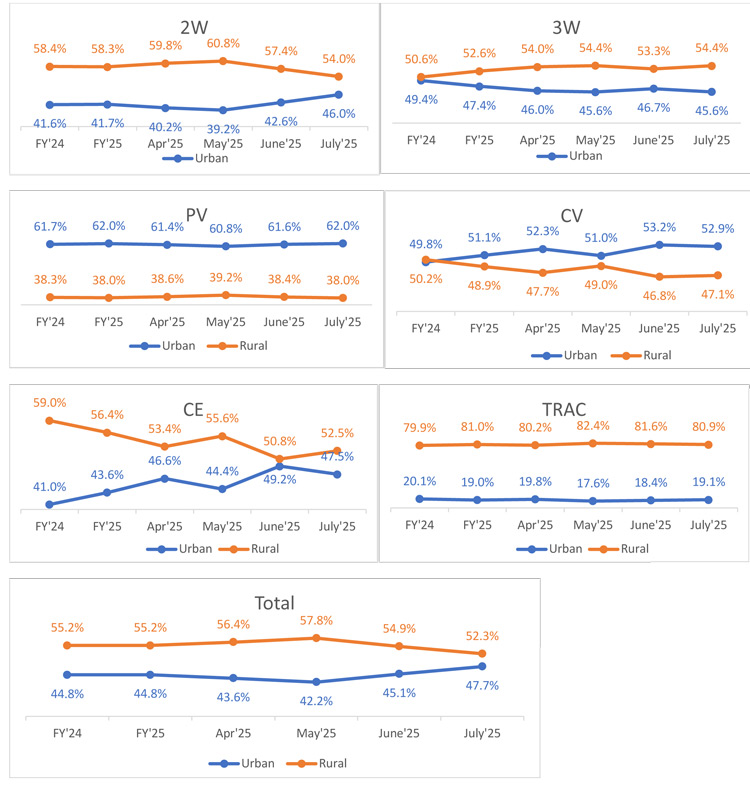 All India Vehicle Retail Strength Index for July’25 on basis of Urban & Rural RTOs.