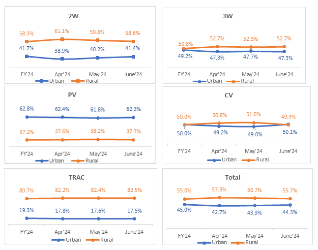 All India Vehicle Retail Strength Index for June’24 on basis of Urban & Rural RTOs.